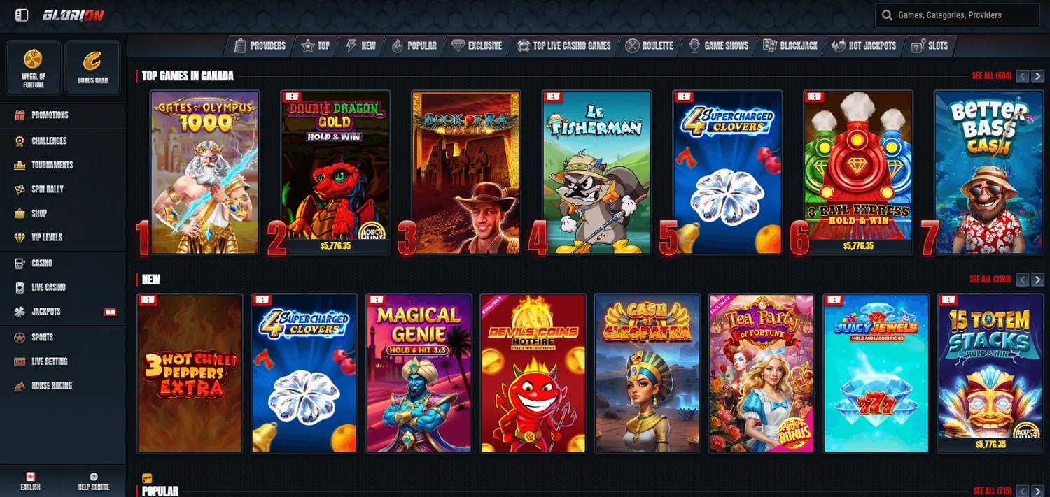33,800+ games – Some Interac casinos, including Jackpot City and Spin, provide less than a tenth of the games available at Glorion. These range from slots to instant win titles.