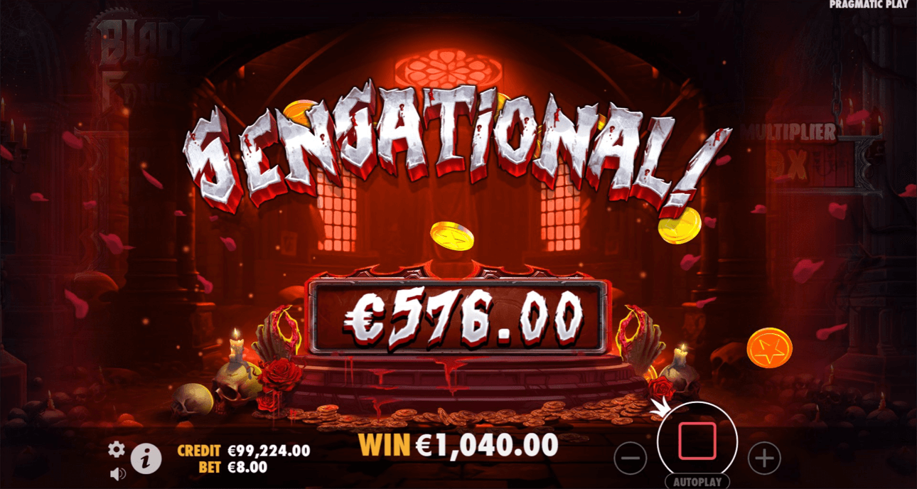 The return to player of Blade and Fangs is 96.05%, about our yardstick for an average of roughly 96%.