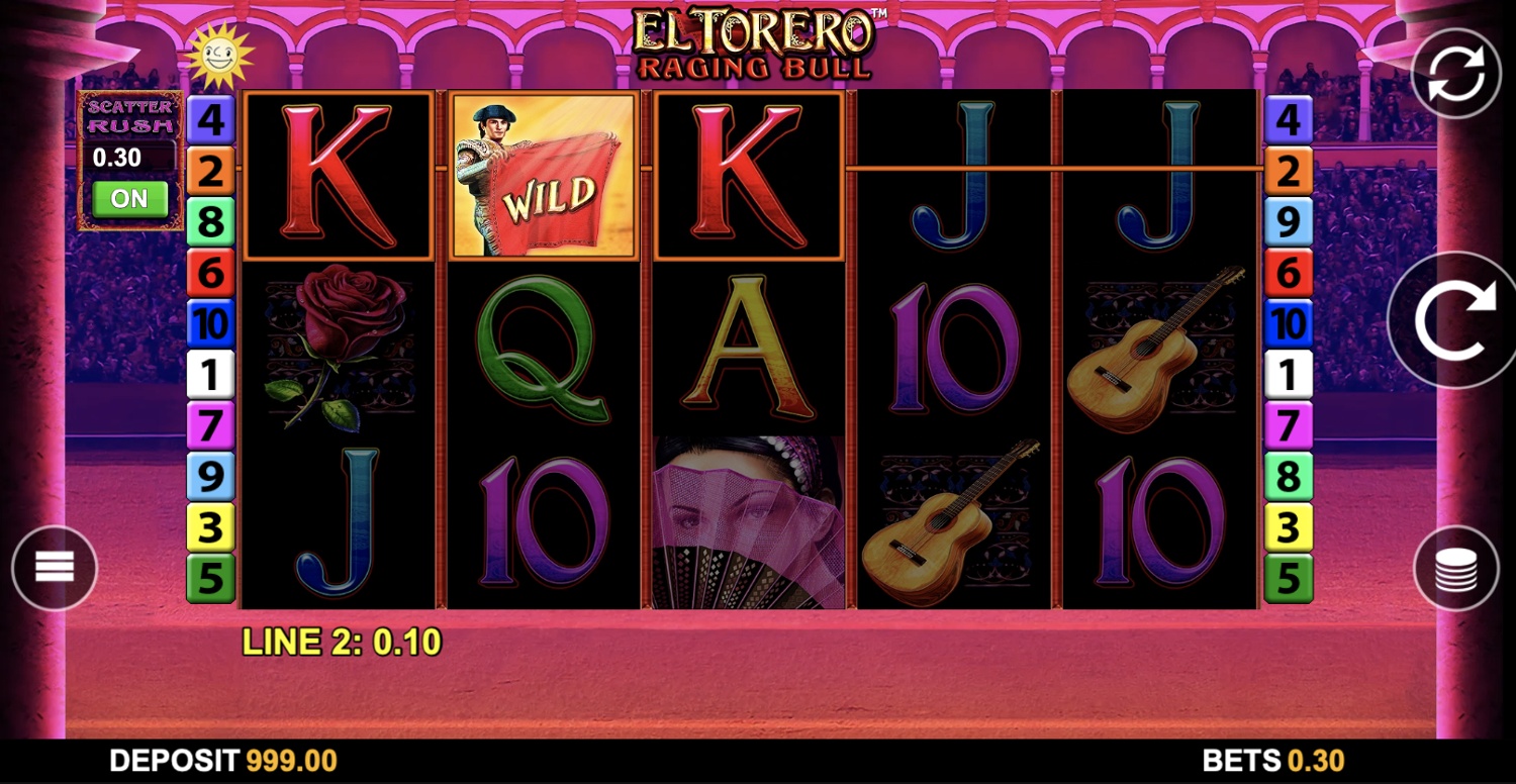 El Torero Raging Bull is a five-reel, three-row slot by Merkur Gaming. It has 10 fixed paylines, RTP of up to 96.18%, and a Free Spins round.