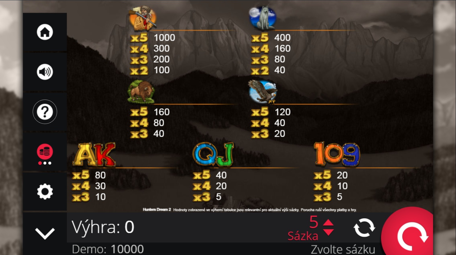 Hunter’s Dream 2 is a 5-reel, 3-row slot accompanied by 20 fixed paylines.