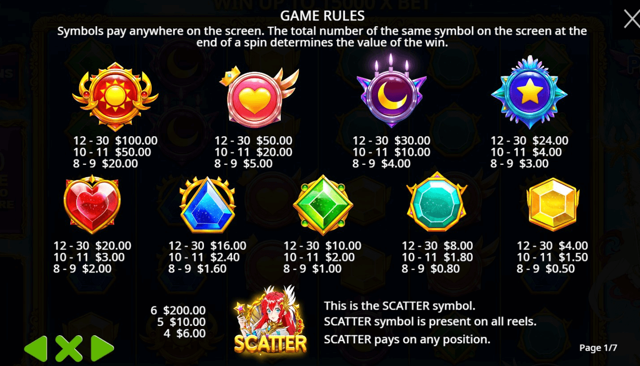 The Starlight Princess 1000 slot is played on a grid that is six symbols by five symbols in size.