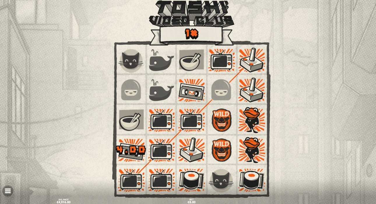 Toshi Video Club is a five-reel, five-row slot with 15 win lines.