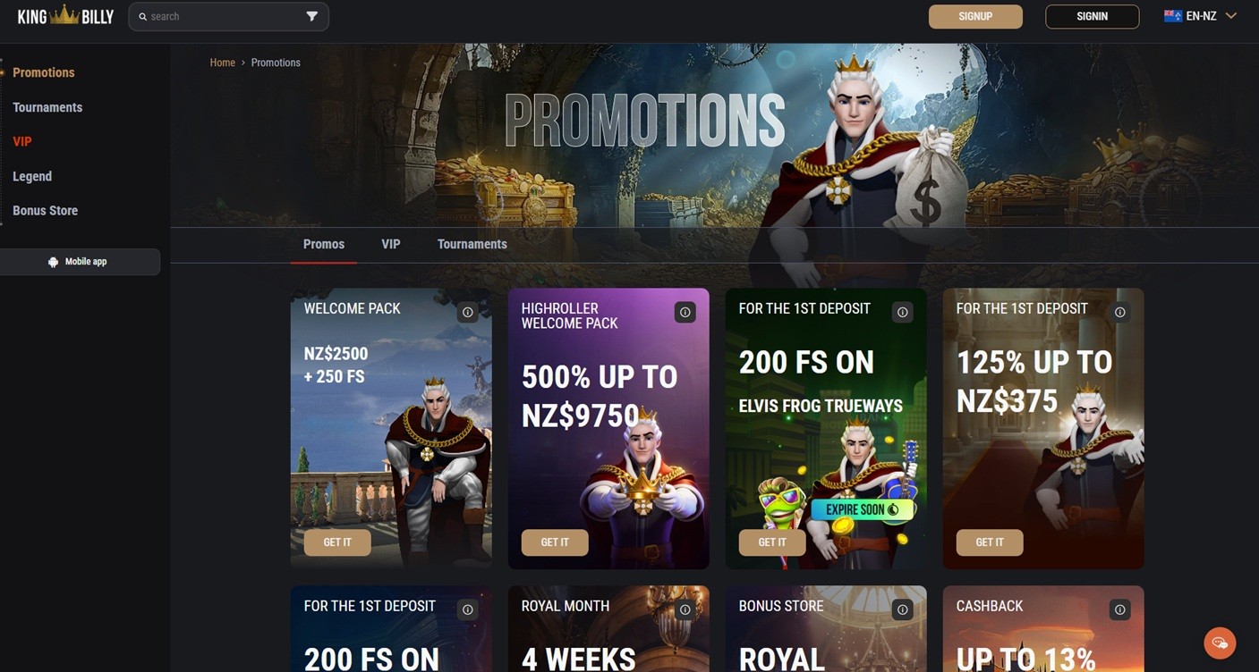 Ongoing promos beyond the welcome offer - The King's Tournament adds repeat value, with 650 free spins per day. It suits players who like regular challenges.
