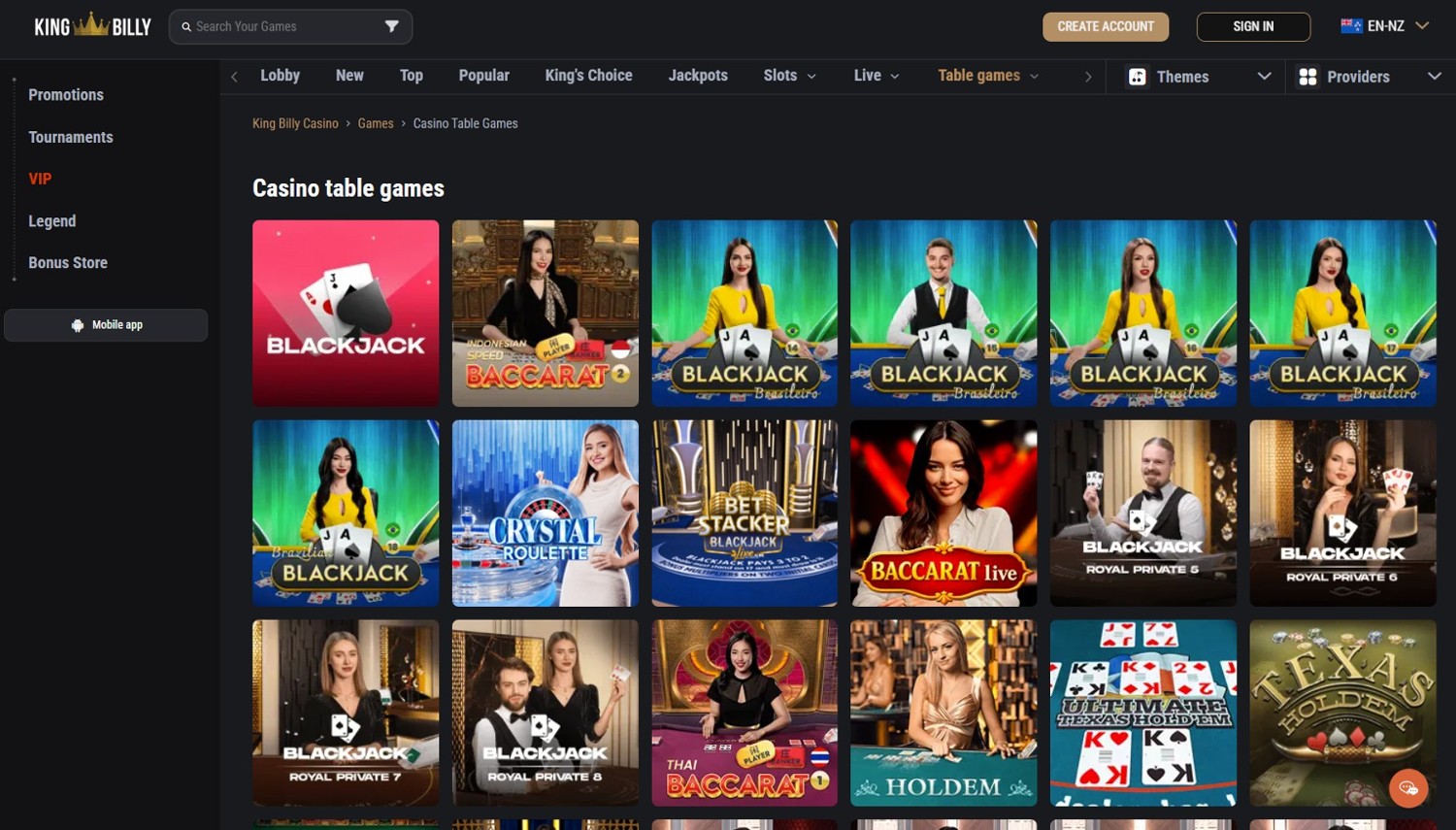 Impressive game selection – King Billy gives blackjack more game options with both standard and live dealer options available from multiple game providers beyond Evolution.