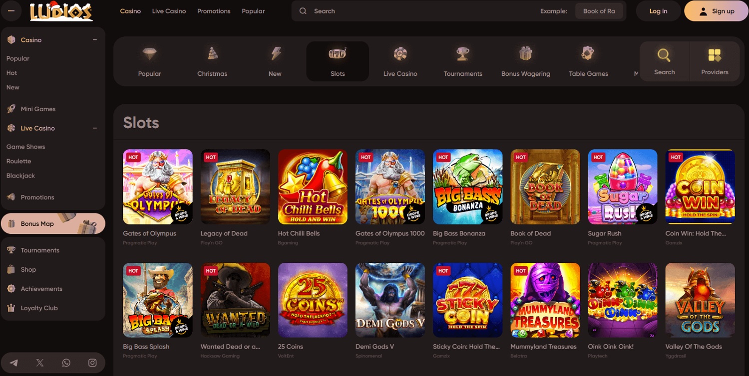 Popular slots include Sugar Rush 1000, Sweet Bonanza, Gates of Olympus, plus seasonal picks like Christmas Big Bass Bonanza, which is great if you enjoy festive or themed sessions. The live casino currently has only 15 games, including live roulette, baccarat, and sic bo, which is tiny compared with Ludios (which has over 500 live games) or Casina, but reasonable for a young brand still building its lobby.