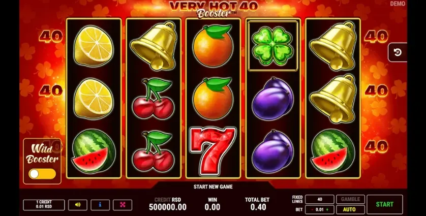 Very Hot Booster 40 je slot mašina od Fazi. Prema broju igrača koji je traže, Very Hot Booster 40 nije veoma popularan slot. Ipak to ne znači da je igra loša, te ne bi bilo na odmet da je probate ili tražite popularne kazino igre