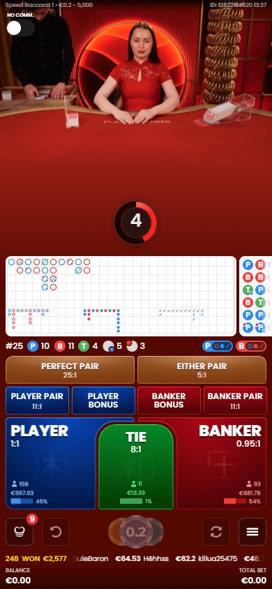 Live baccarat is simple because you're staking the banker, player, or tie. Rounds are often 30-60 seconds, or even faster in speed baccarat.