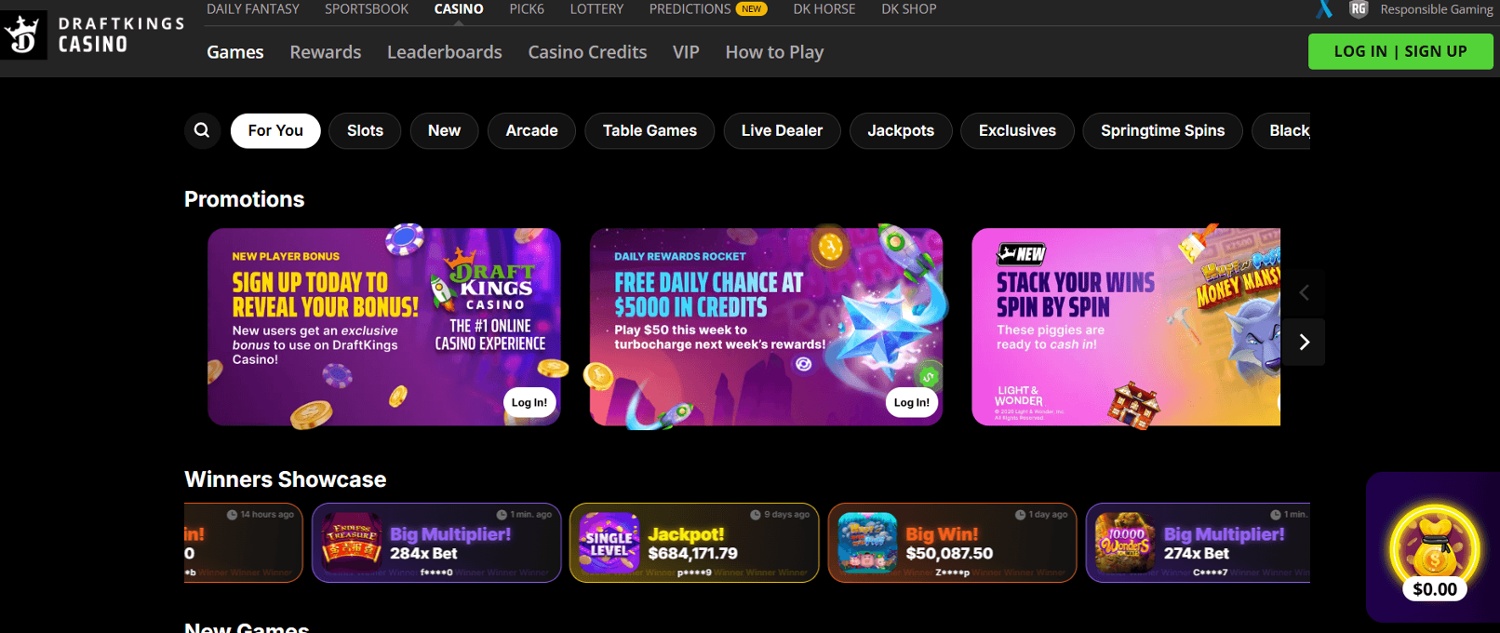 Expect well over 1,400 games at DraftKings, with a mix of slots, exclusive titles, table games, and live dealers. The portfolio doubles the 700+ games at Caesars, with several unique titles you won't find anywhere else.