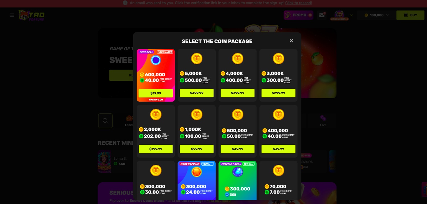 Where things fall a little short is in the Discover sweepstakes: Fortune Coins offers a signup bonus of 630,000 GC and 1,000 FC, which is worth $10. Casinos like TaoFortune also offers a sign-up bonus of 175,000 GC and 1 SC. These bonuses are on the lower end of what other casinos that do not accept Discover offer, with signup promotions usually around 20 SC.