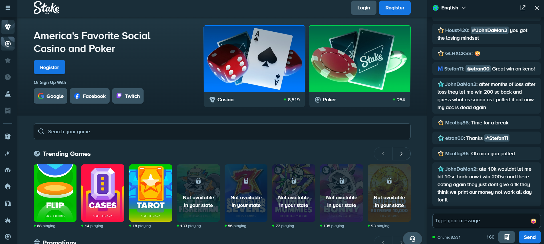 Stake also has a 7.9 rating on our Safety Index, and while that number could be higher, it still performs better than a casino like HelloMillions, which scored only 5.2.